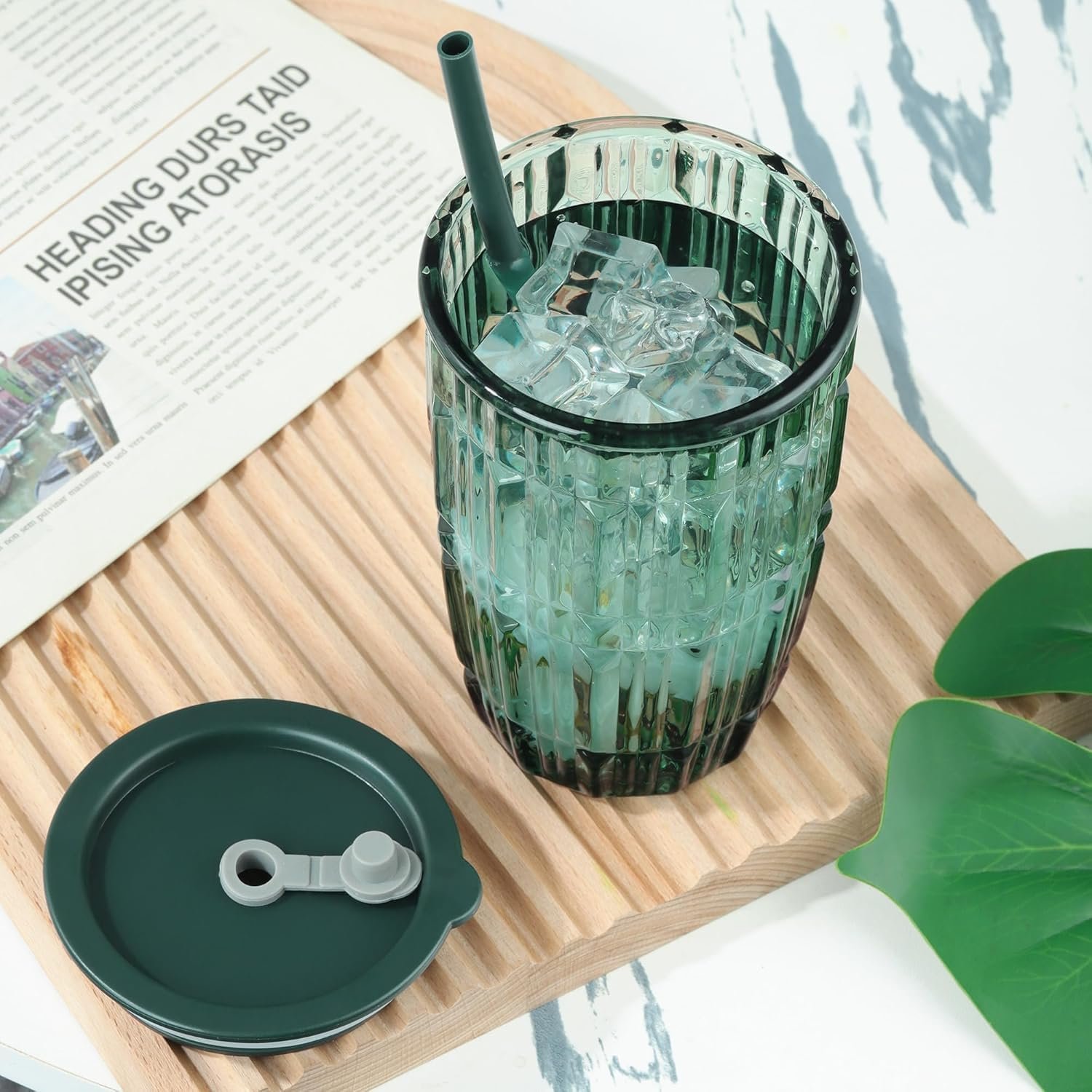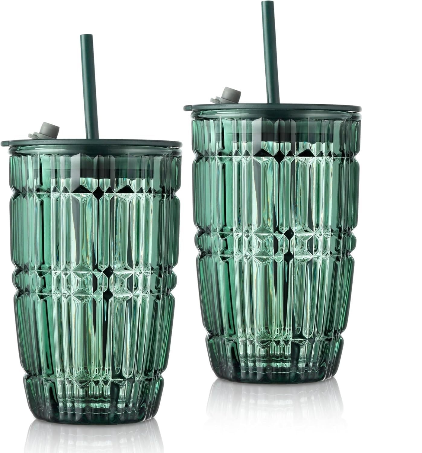 KiKiluxxa Coffee Can Glass Sipper Tumbler with Lid Straw - 400ml-Pack of 1- Green Tea Fruit Juice Milk Glass Cup Mug with Lid and Straw (Tropexz 1)
