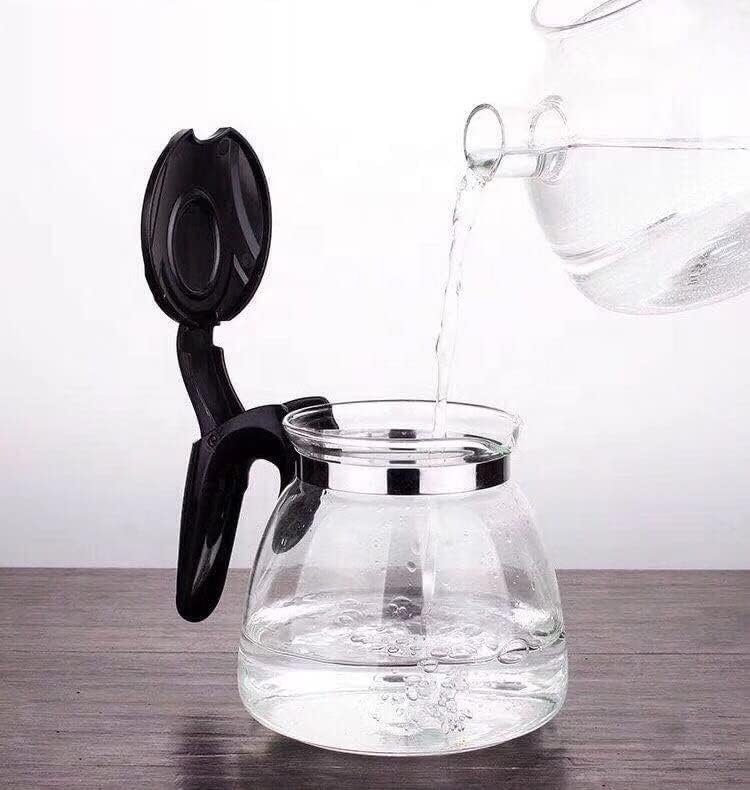 KiKiluxxa Round Glass Kettle with Plastic Handle Lid 1 Liter - Non Gas Stovetop Safe Tea Pot with Heat Resistant Stainless Steel Infuser Perfect for Loose Leaf Tea (Yorotez Kettle)