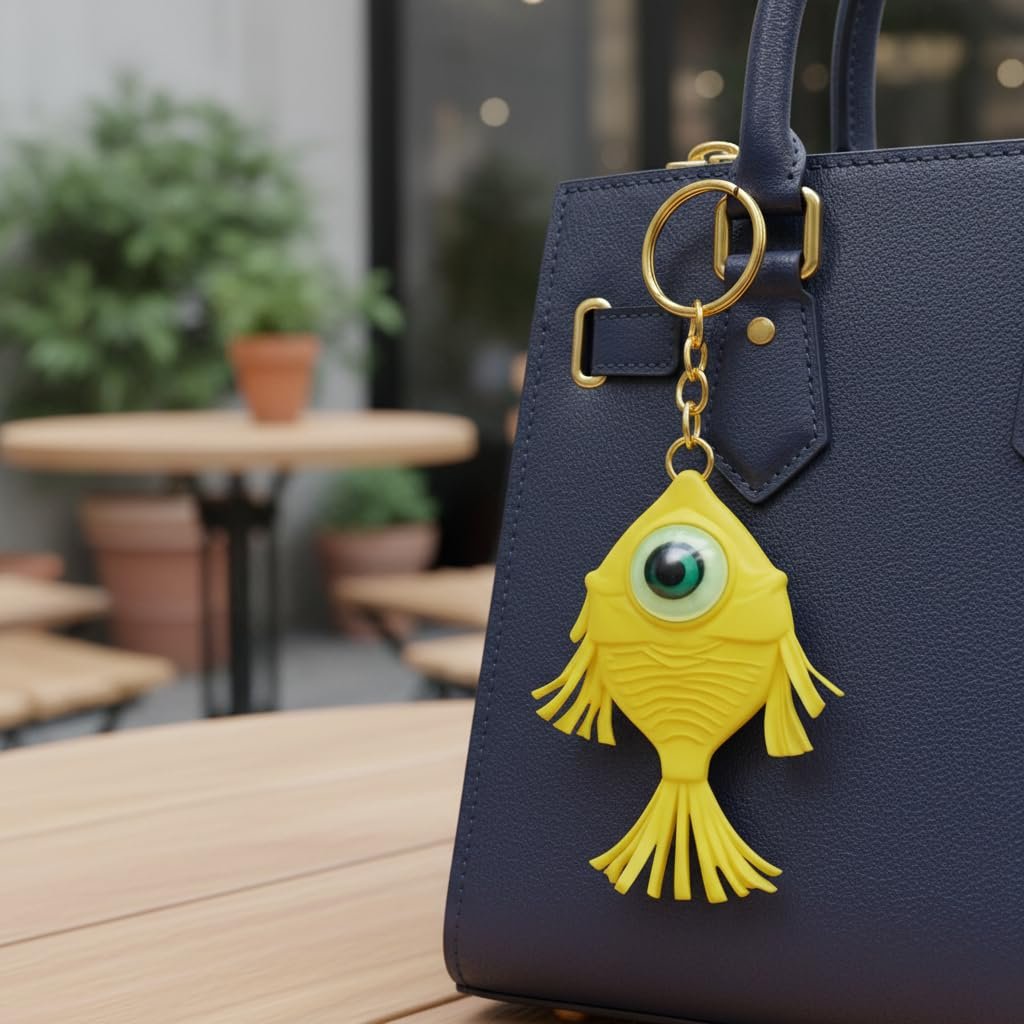 • Bright Yellow & White Attractive Design — Eye-catching dual-tone colours with a unique fish shape that adds a touch of positivity, charm, and personal style to your accessories.